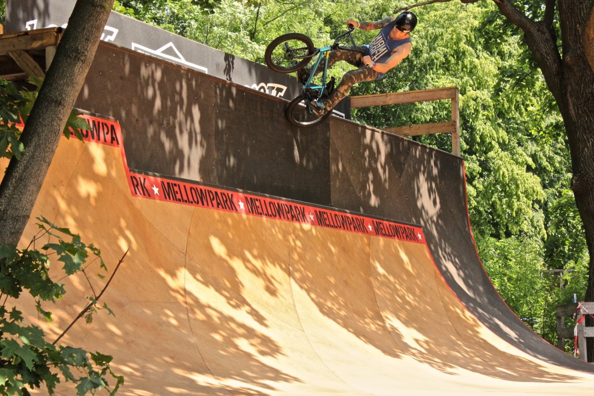 Juraj klasicky přetýká energií, hecuje zbytek a to rovnou směr Mellow Park. Dorážíme kolem třetí do parku a máme tak dost času si zajezdit všude od mini, přes plazu až po rudis park, jak tady říkají parku obsahujícímu funboxy a radiusy poctivé velikosti. Je čtvrtek večer, park se plní a přijíždí dost lidí, kteří se stejně jako my rozhodli tu být už den předem. Hlavní program přitom vlastně začíná až v sobotu... Jsem v Mellow Parku poprvé a je to vážně super místo, kde si svoje k zaježdění najde snad každý. Je tu dokonce i moc pěkný dirtoviště, který místní zrovna připravujou na víkend.
