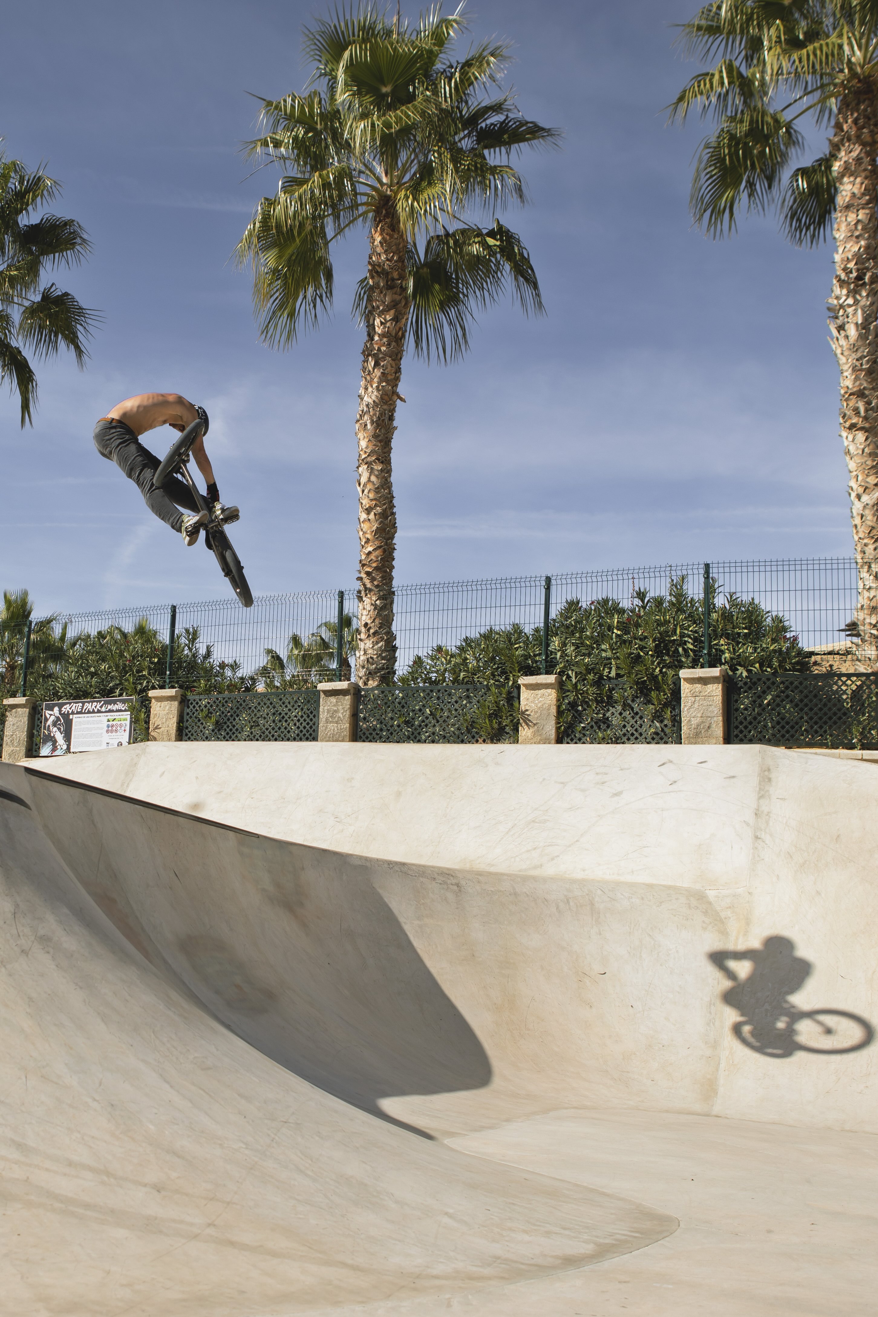 Středa dopolko menší krize – únava, takže přes den chill a na večer byla domluvená session na trailsech v Rubena parku. Solidní skvadra bikerů, jezdil s náma třeba Pitu – Španělák co jezdí za FlyBikes atd… Super session, jen Ondra snad druhej pokus, co nalítaval skoky, tak zához a nějak si vykloubil palec na ruce, byl z toho nějakej špatnej, tak šel odpočívat a my jsme pokračovali… Čtvrtek další výlet tentokrát do Marbella skateparku, obří skatepark, kde je street plaza, 3 bowly a taky top !! Pro změnu tady zas trénovalo docela dost koloběžkářu, jelikož tu měli taky o víkendu contest :D My jsme si ale samozřejmě místo udělali a něco se povedlo pofotit a natočit :)