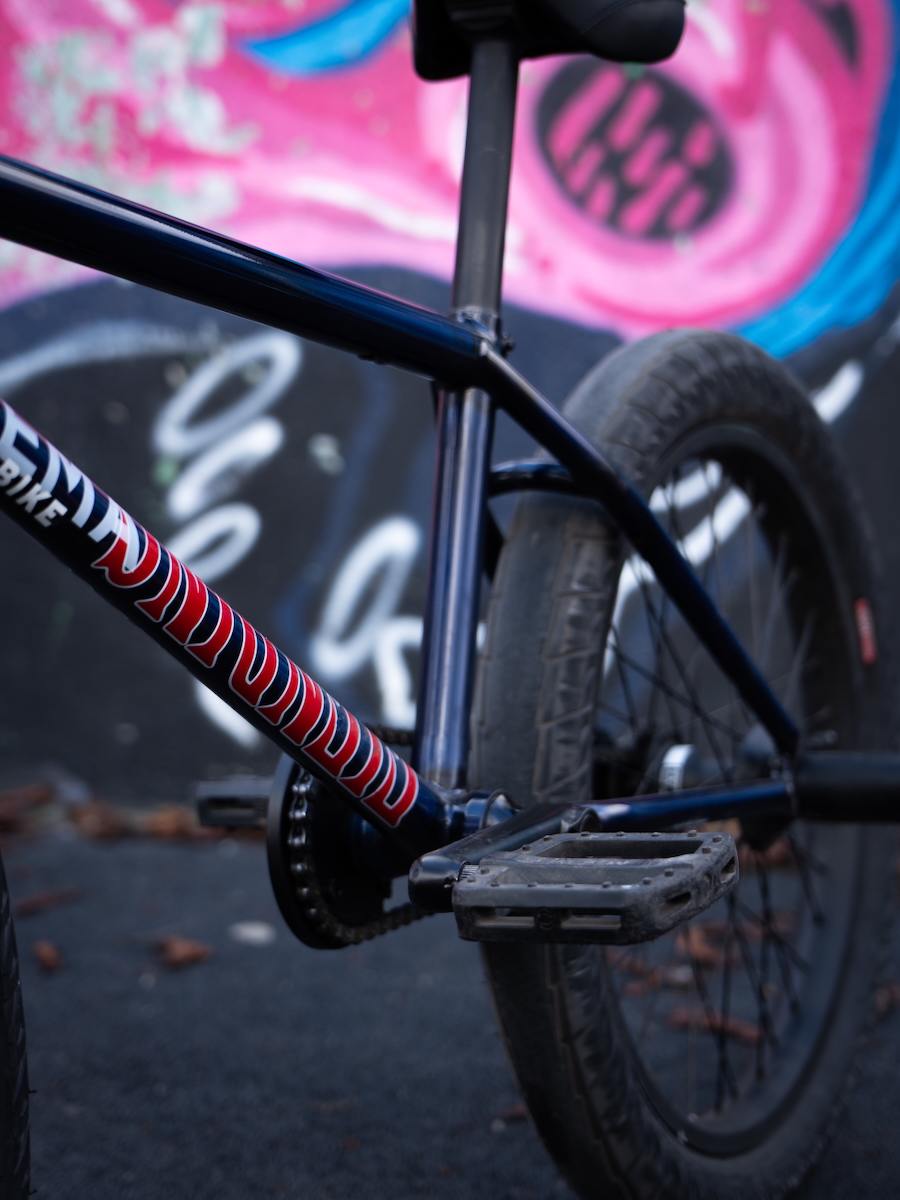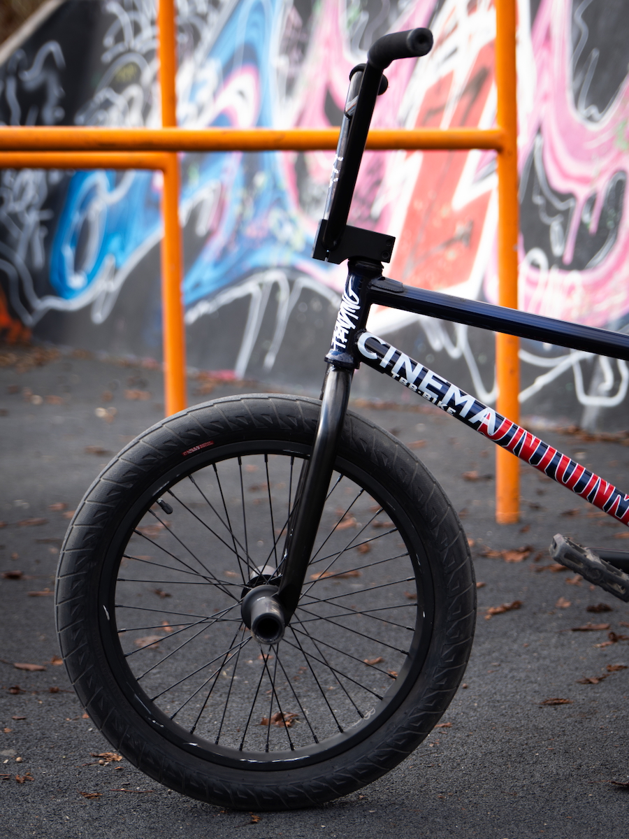 Jinak to mám klasicky postavený na 20,75 Mills rámu na kterej nedám dopustit, už je to asi čtvrtej co mám hahah. Fiend vidlice s 20mm offsetem, Fiend 160mm kliky na kterých mám Cinema Tilt pedály. Obutý to mám na Cinema Williams 2,50 pláštích, FX nábojích zapletený vpředu do ráfku 888 a vzadu do sig. Garrettovo.