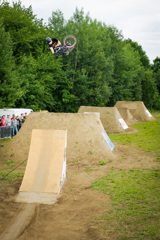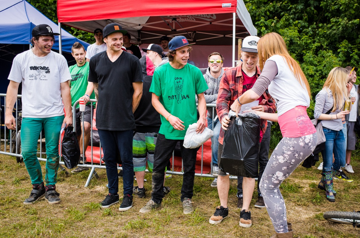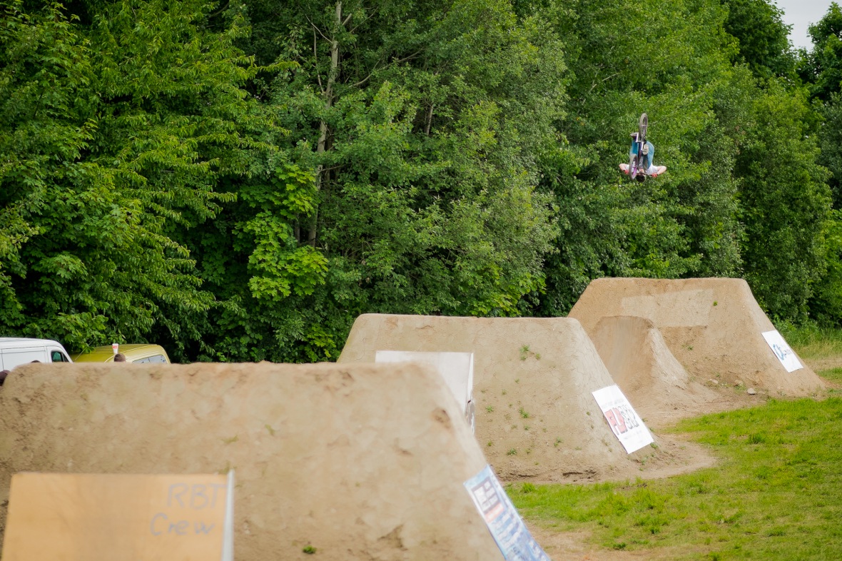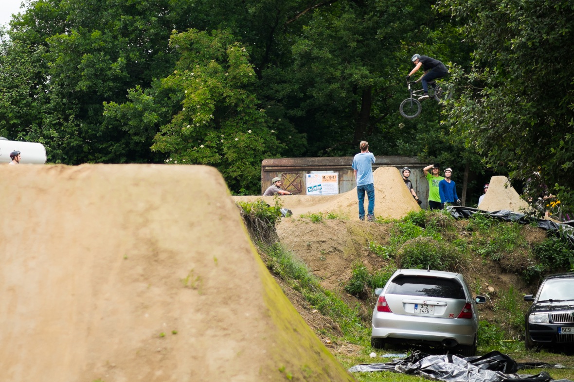 Přípravy probíhaly hladce. Vše bylo přichystané, pivo teklo, akorát počasí od rána nevěstilo nic dobrého. Dvě hodiny před jamem začal déšť. Skoky byly sice zakryté plachtami, nicméně v tu chvíli celá crew propadala panice, že jam neodjedeme. Vtom se ukázal Honza Reindl, místní rider a člen Ride Bike Teamu, jako správný hecíř. Vyplachtoval cestu z druhého dopadu na třetí skok a mohla začít správná crazy water slide za podpory přihlížejících diváků, některých i zúčastněních. Počasí se začínalo pomalu udobřovat a po krátké digovací přestávce mohly začít tréninky.