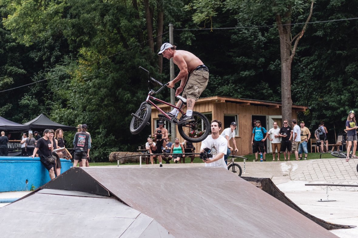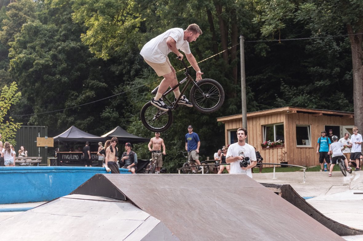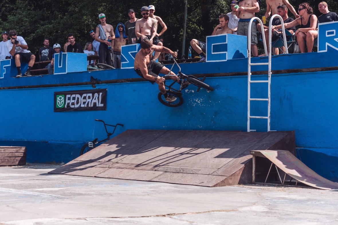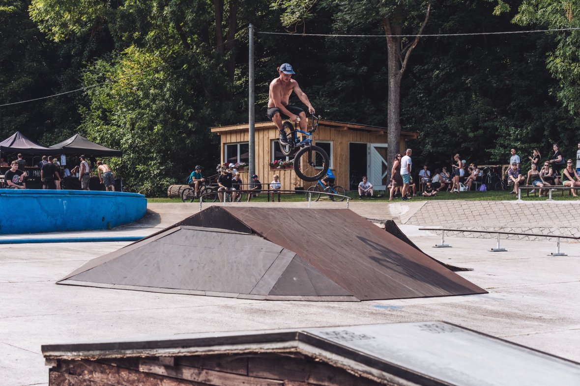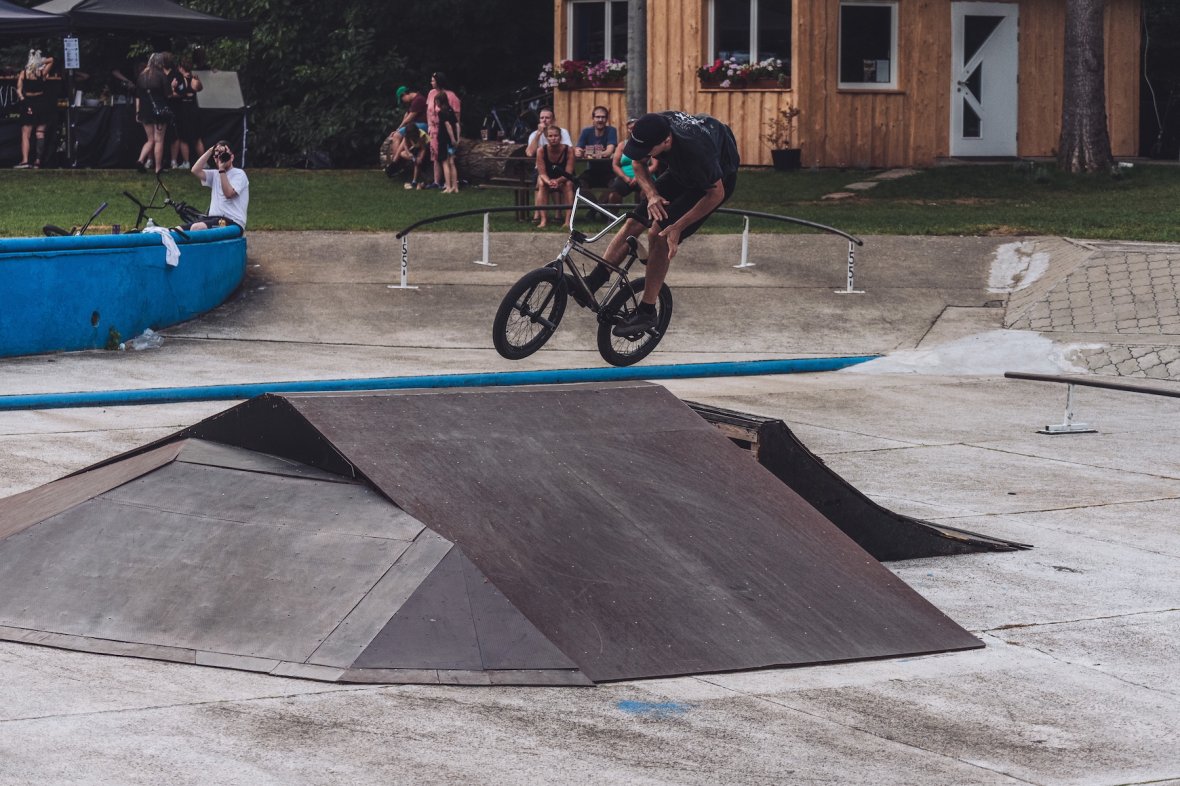 Jam jako takový se vydařil, dojelo hodně lidí stejně jako předešlé ročníky. Bohužel nám teda asi na hodinku zapršelo a my tak přišli o čas a dva separátní jamy. Naštěstí kvalifikace se stihla odjet celá než se spustil slejvák. Koupák byl po celým teplým létě rozpálenej a do hodinky bylo sucho. Dohodli jsme se že jediný, co před finále stihneme, tak bude jam na "áčku". Padaly nesmyslný triky a zase to rozproudilo trochu krev po té pauze. Vítěz mohl být jen jeden, porota se dohodla že Márty Floka si to zaslouží nejvíc. Není se čemu divit, byl aktivní a všechno odjížděl s jistotou.