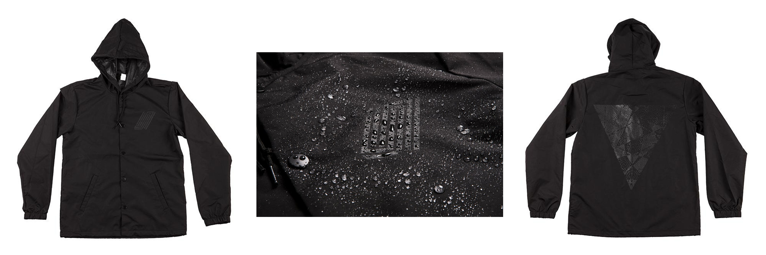 Mikina je naprosto klasická Hoodie povedeného střihu s REBORN potiskem na hrudi a rukávu. Materiál je příjemná směs polyesteru a bavlny - 20% polyester, 80% bavlna. Pouze v šedé barvě. Na závěr je tu hodně oblíbená podzimní/jarní bunda, která Vás ochrání proti větru i dešti. Nejde o klasickou šustku, povrch bundy je matný, tkaný. Na matném povrchu je skvěle vypadající leskle černý potisk, shodný s designem L/S trika HOOPER. Na hrudi decentní potisk, na zádech hooper triangle. Materiál 100% nylon.