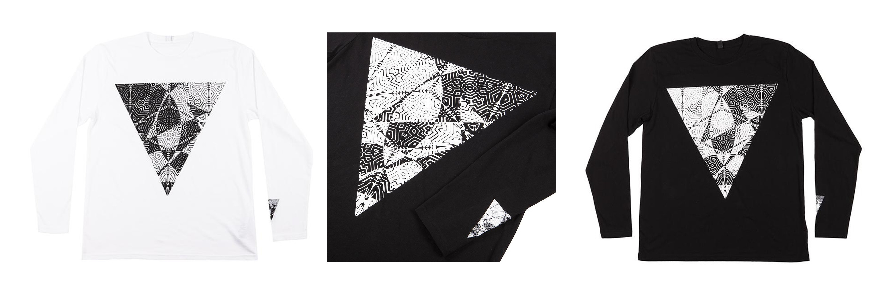 V nabídce nechybí trika s krátkým ani dlouhým rukávem. Co se barev týká, není co řešit. Bílá, černá, šedá a tím to končí. Triko s krátkým rukávem má design navádějící Vás k inkarnaci. V tomhle triku se budete cítit ve své kůži. Triko s dlouhým rukávem nese na hrudi a rukávu trojúhelníkový potisk a má podařený moderní střih. Černá nebo bílá varianta, 100% bavlna.